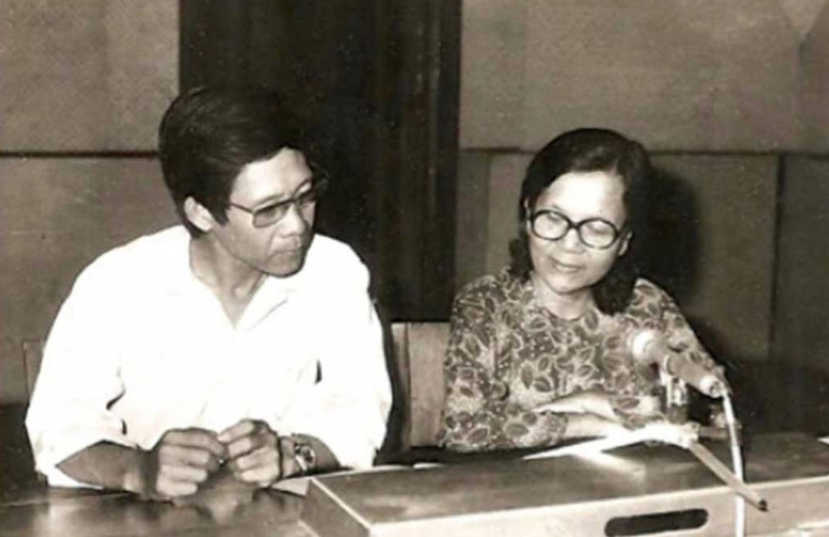 NSƯT Hà Phương (trái) cùng NSND Tuyết Mai khi còn công tác tại Đài Tiếng nói Việt Nam.