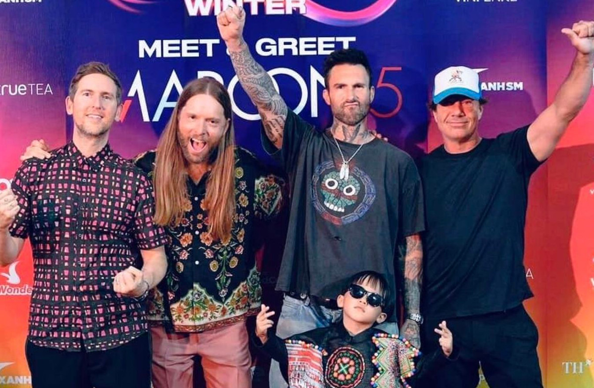 Hình ảnh chụp chung của Xệ Xệ được Maroon 5 và trưởng nhóm Adam Levine chia sẻ lên các kênh của nhóm nhạc với hàng chục triệu fan quốc tế theo dõi.