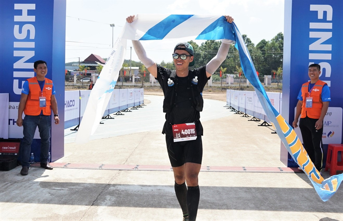 Kết thúc đường chạy, ở cự ly 42 km, giải nhất nam thuộc về VĐV Nguyễn Huy Hoàng (trong hình), nữ là VĐV Nguyễn Thị Trúc Quỳnh.