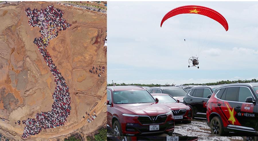 Khoảng 16h30, thời khắc được mong đợi nhất đã đến khi tấm bản đồ đặc biệt hoàn thiện. Hình ảnh chữ S khổng lồ cùng cụm biển đảo thiêng liêng của Tổ quốc được xếp bởi 1.700 chiếc ô tô, trong đó có khoảng 1.000 xe thương hiệu Việt, tạo nên khoảnh khắc đáng nhớ chưa từng có với rất nhiều người.