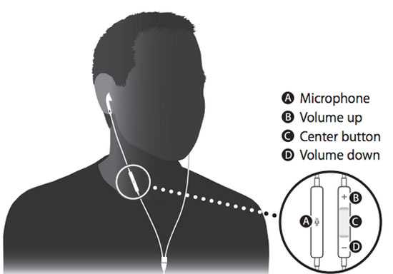 Tai nghe của Apple có ba phím nhưng hầu hết chức năng điều khiển đều dùng thông qua phím trung tâm.
