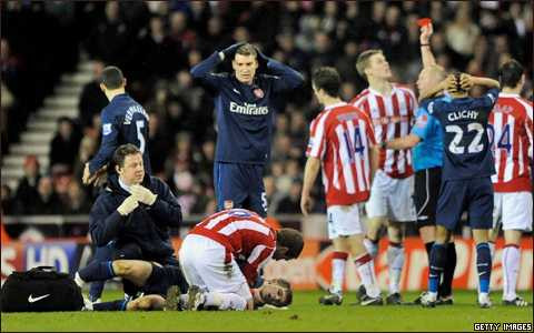 Các cầu thủ của Arsenal với lối chơi kỹ thuật đặc trưng luôn là mục tiêu triệt hạ của đối thủ. Lần này, thủ phạm là một người Stoke City. Shawcross có thể không cố ý trong tình huống này, anh ấy đã khóc trên đường rời sân sau khi nhận thẻ đỏ, nhưng bất kỳ người hâm mộ bóng đá nào cũng sẽ cảm thấy ghê rợn khi nhìn vào cái chân phải gãy gập của Ramsey đồng thời bày tỏ sự phẫn nộ dành cho Shawcross.