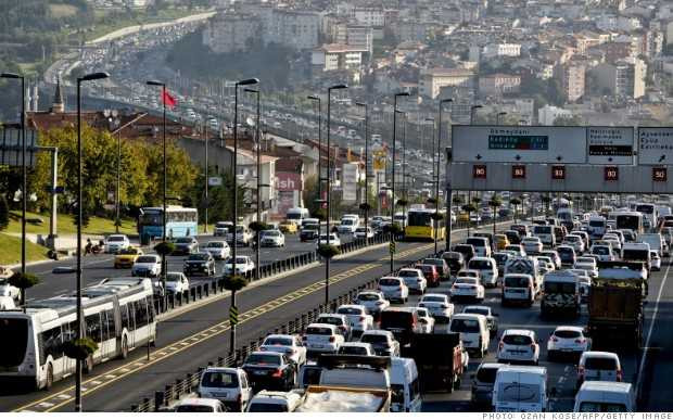 Istanbul (Thổ Nhĩ Kỳ)Istanbul là thành phố có tỷ lệ tắc đường vào giờ cao điểm kinh khủng nhất thế giới. Với vị trí địa lý khá đặc biệt khi một phần diện tích nằm ở châu Âu, một phần lại thuộc lãnh thổ châu Á, Istanbul là nơi giao nhau của nhiều tuyến giao thông trọng điểm giữa các châu lục.