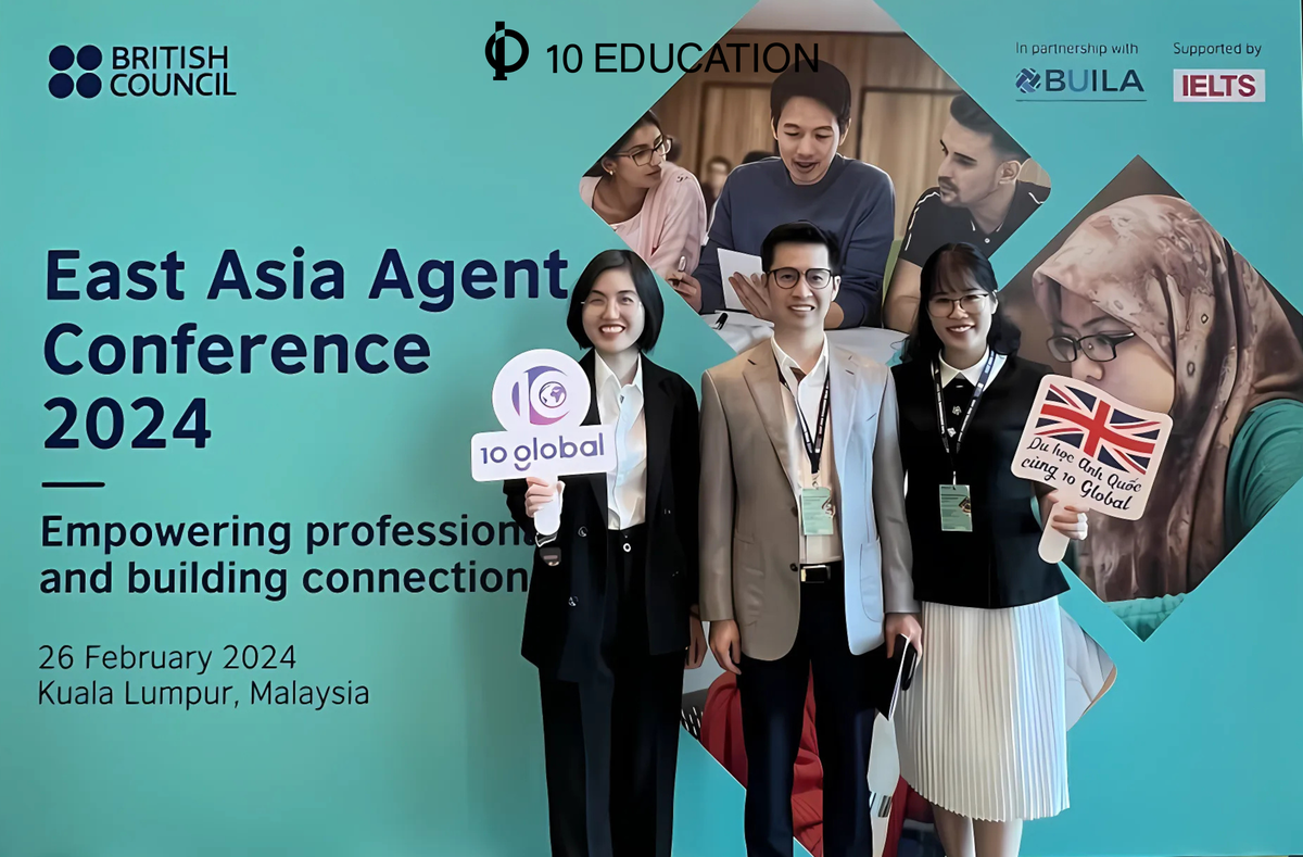 Ngay sau đó, Tại sự kiện "East Asia Agent Conference 2024", Du học 10 Global của 10 Education được Hội đồng Anh (British Council) trao chứng nhận đào tạo nghiệp vụ tư vấn du học diễn ra tại Maylaysia.
