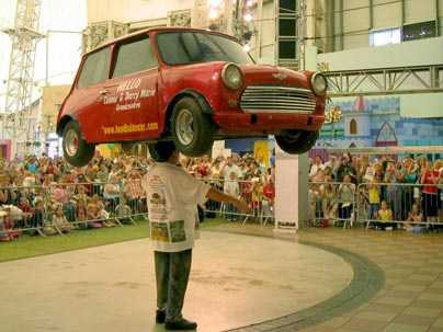 Kỷ lục đội xe hơi bằng đầu thuộc về một người thợ đóng gạch có tên John Evans. Ông này đã đội một chiếc Mini lên đầu.