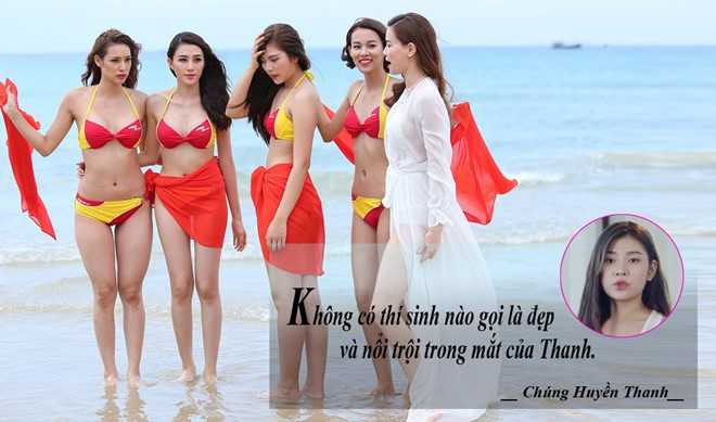 | Ở phần thi trang phục bikini, Chúng Huyền Thanh đánh giá cả ba đội đều không có thí sinh nào nổi bật, đẹp lộng lẫy trong mắt cô. |