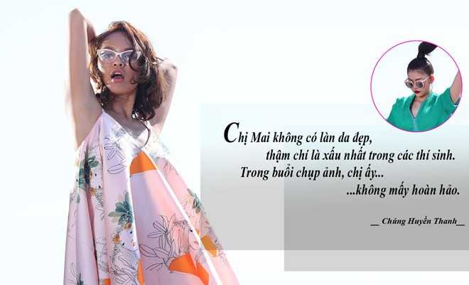 | Sau đó, chân dài 19 tuổi còn cho rằng Quỳnh Mai là thí sinh có làn da xấu nhất trong cuộc thi. Nước da sậm màu khiến vũ công kém hoàn hảo trong những shoot ảnh của chương trình. |