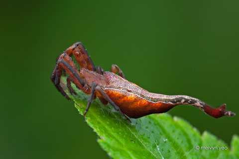Đây là một trong những loài nhện có ngoại hình trông khá tươi sáng và thú vị. Nhiều người còn nói rằng chú nhện này trông như đang hóa trang thành bọ rùa trong mùa Halloween vậy. Loài này đã được phát hiện lần đầu tiên trong một khu rừng được bảo tồn tại Singapore vào năm 1924, chúng thường sống trong các tán lá cây nhỏ.