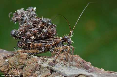 Loài nhện sát thủ chuyên dùng nọc độc để giết các con mồi chủ yếu là kiến và sau đó chúng sẽ dùng xác chết của những con kiến mình giết để làm tấm khiên bảo vệ mình khỏi kẻ thù. Những con nhện này chỉ dài hơn 1 cm. Chúng thường sống trên cây, nơi có nguồn thức ăn vô cùng phong phú.