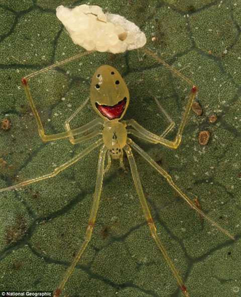 Loài nhện này có hình mặt người hài hước trên phần bụng của con nhện.Nhện mặt cười chỉ dài vài mm. Chúng sống trong các rừng nhiệt đới tại quần đảo Hawaii (Mỹ) và hoàn toàn vô hại đối với người. Điểm độc đáo nhất của loài nhện này là lưng của chúng có những họa tiết giống khuôn mặt người đang cười.Không phải tất cả nhện mặt cười đều có mặt cười trên lưng. Nhiều con chỉ có chiếc lưng màu xanh dương hoặc da cam.