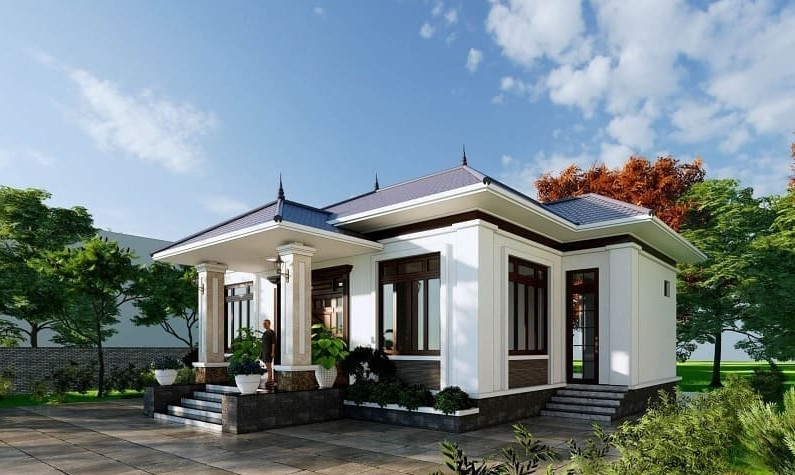 Mẫu nhà cấp 4 mái ngói hiện đại có ưu điểm về độ bền, không gây tiếng ồn khi mưa. Mái ngói ít hấp thụ nhiệt độ nên ngôi nhà luôn mát mẻ. (Ảnh: Xaynhapho)