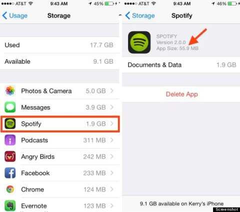 Có những ứng dụng sẽ tự động download hoặc lưu trữ thông tin làm việc của bạn. Chính vì thế, bản thân chúng chỉ chiếm vài chục MB bộ nhớ trong của chiếc iPhone nhưng sau khi sử dụng, dung lượng của nó lên đến vài GB. Điển hình là ứng dụng Facebook, Spotify.