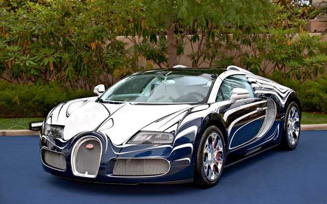 Phiên bản Veyron L’Or Blanc hay còn được biết đến là phiên bản gốm sứ, là sản phẩm hợp tác giữa Bugatti và nhà máy gốm sứ hoàng gia tại Berlin, Đức. Ngoại thất của xe sử dụng loại thiết kế gốm sứ đặc biệt, kết hợp hai tông màu xanh dương và trắng. Ảnh: Wallpaperup.