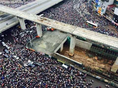 | Năm 2015, người Hà Nội như 'phát điên' với tình trạng ùn tắc giao thông tại nhiều tuyến đường trọng điểm của thủ đô. Trong ảnh là cảnh ùn tắc giao thông khủng khiếp tại ngã tư Nguyễn Trãi - Khuất Duy Tiến. Tại tuyến đường này, đang thi công đường sắt trên cao Cát Linh - Hà Đông, Hâm chui Thanh Xuân, phần lớn lòng đường bị rào chắn phục vụ thi công, gây ra tình trạng ùn ứ nghiêm trọng. Nhiều tuyến đường khác ở thủ đô bị rào chắn phục vụ thi công như Hồ Tùng Mậu, Xuân Thủy, Cầu Giấy, Láng...cũng thường xuyên xảy ra ùn tắc. |