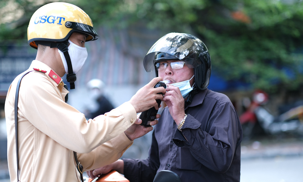 Kiểm tra nồng độ cồn với người tham gia giao thông tại Hà Nội.