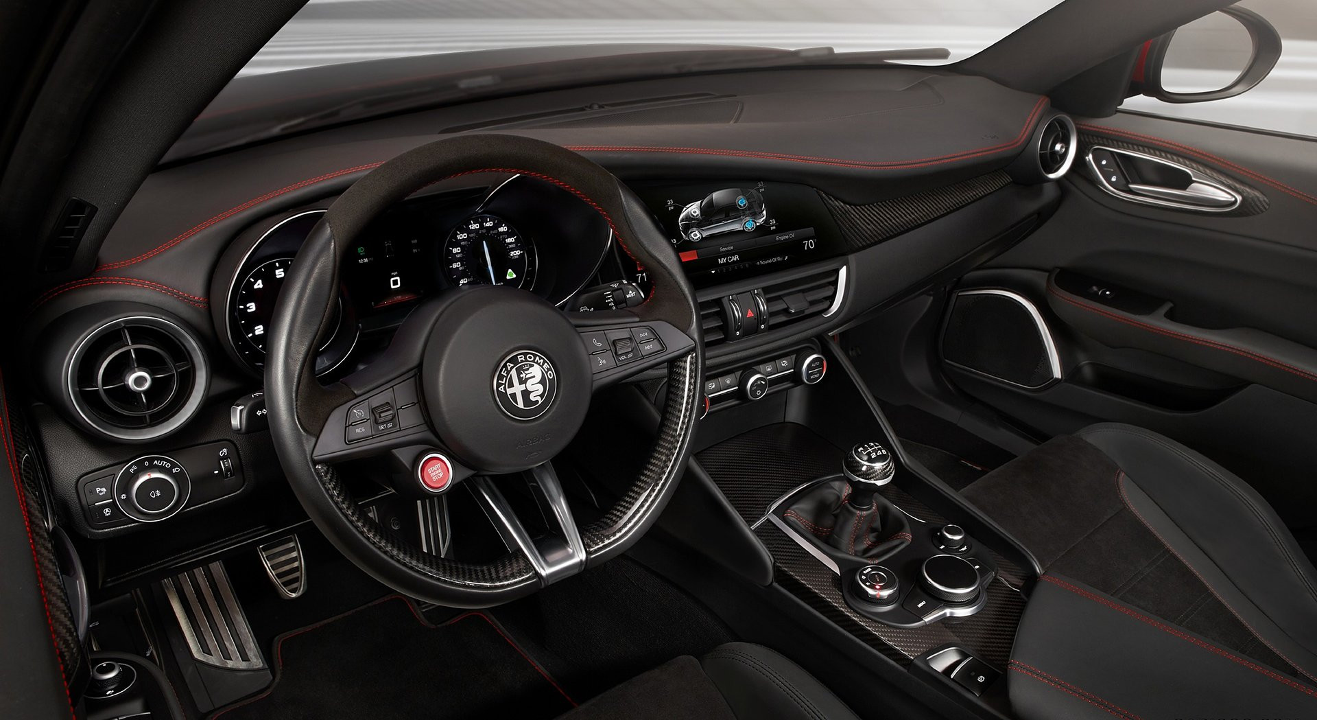 Thiết kế nội thất tập trung vào người lái, phong cách thể thao. Alfa Romeo sử dụng da cao cấp Alcantara, trang trí thêm với sợi carbon, nhôm. Vô-lăng lấy cảm hứng từ xe F1. Bảng đồng hồ thể thao tích hợp màn hình DID 7 inch hiển thị đầy đủ thông tin xe. Màn hình cảm ứng 8,8 inch cho hệ thống thông tin giải trí.