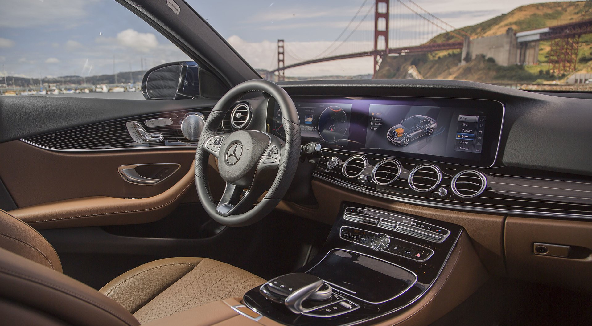 Nội thất E-class 2018 thừa hưởng từ S-class với bảng đồng hồ màn hình LCD kép, bao gồm bảng điều khiển và màn hình hiển thị trung tâm kích thước 12,3 inch. Hỗ trợ kết nối Apple CarPlay và Android Auto. Ghế da, nhiều chi tiết trang trí bằng gỗ và nhôm. Cửa gió điều hòa lấy ý tưởng trên máy bay phản lực.