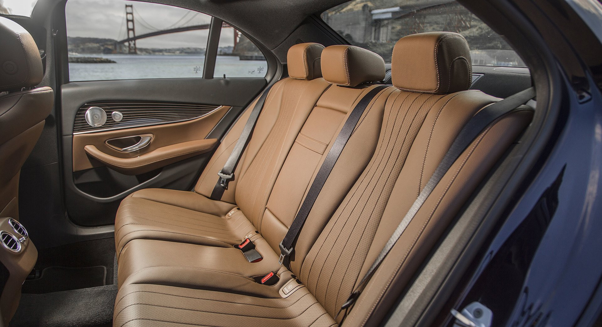 Không gian cho hành khách phía sau rộng rãi. Xe trang bị cửa gió điều hòa cho hàng ghế sau. E-class 2018 bán ra ở Mỹ với 5 phiên bản gồm E300, E300 4Matic, E400 4Matic, E43 AMG và E63 S AMG, giá từ 53.000-104.400 USD.