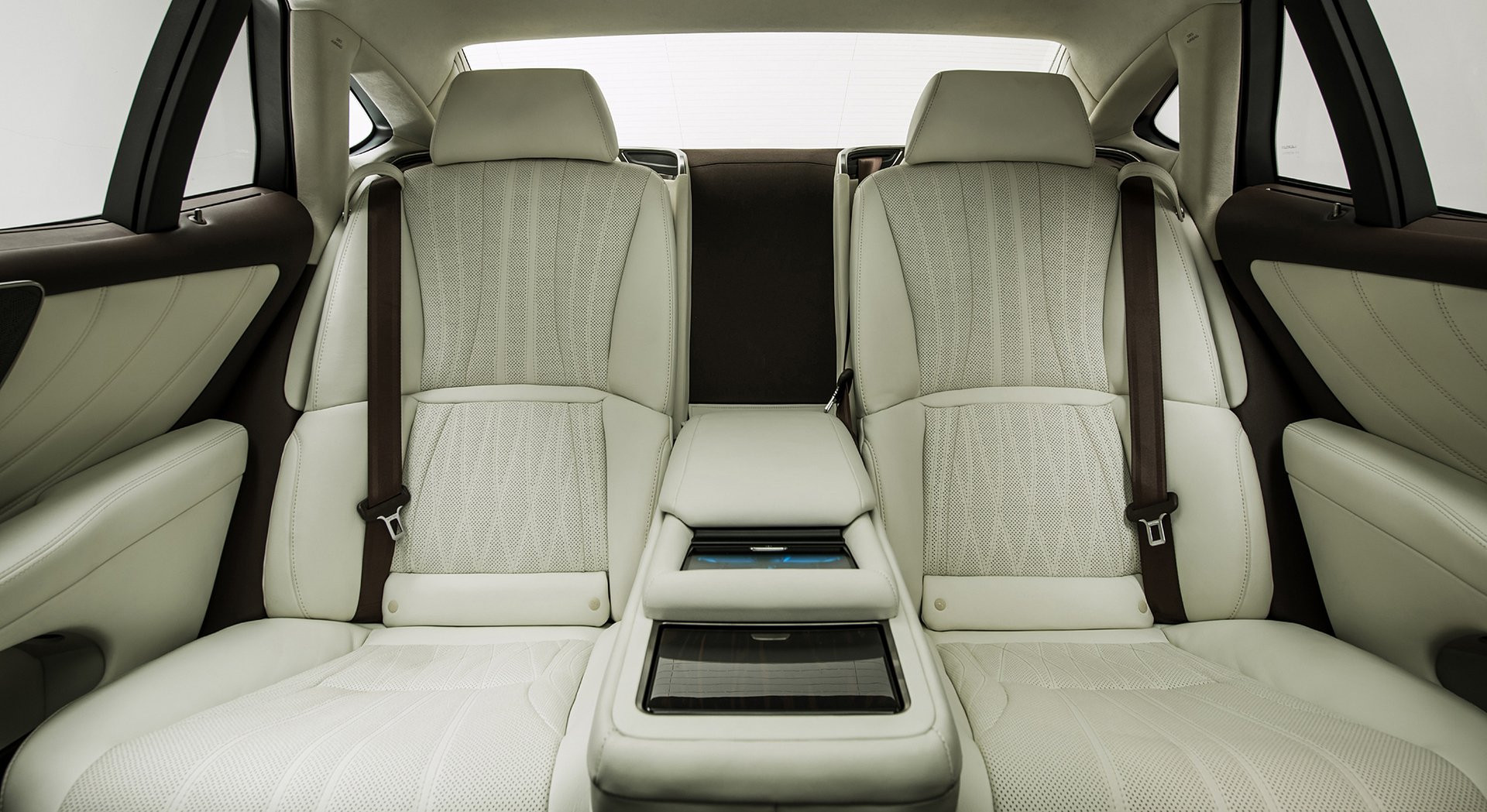 Ghế sau cài sẵn 7 chế độ massage riêng biệt. LS còn có tùy chọn ghế sau có sưởi và massage, hàng ghế sau ngả 48 độ. Trên ốp cửa là chi tiết trang trí đặc biệt ấn tượng bằng thủy tinh Kiriko truyền thống Nhật Bản.