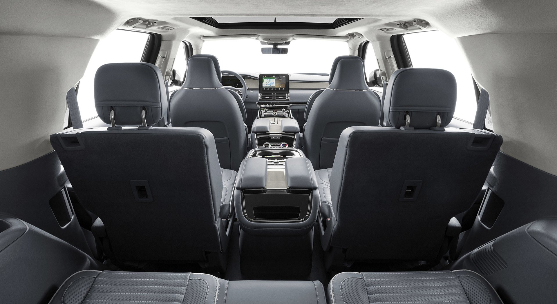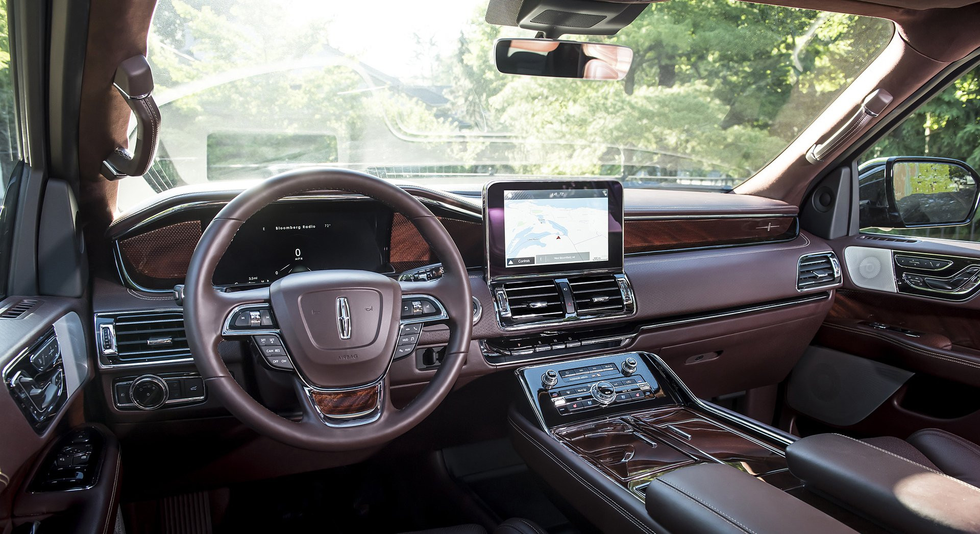 Mẫu SUV cỡ lớn trang trí nội thất với da cao cấp và gỗ quý. Màn hình cảm ứng cỡ lớn cho hệ thống thông tin giải trí SYNC 3, tương thích Apple CarPlay và Android Auto, sạc không dây cho thiết bị di động, 4 ổ cắm 12V và một ổ 110V.