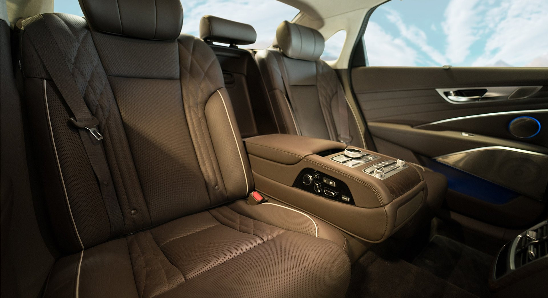 Hàng ghế sau thiết kế ghế riêng biệt, hai ghế lớn chỉnh điện. Bảng điều khiển nhiều tính năng. Hệ thống điều hòa 4 vùng.