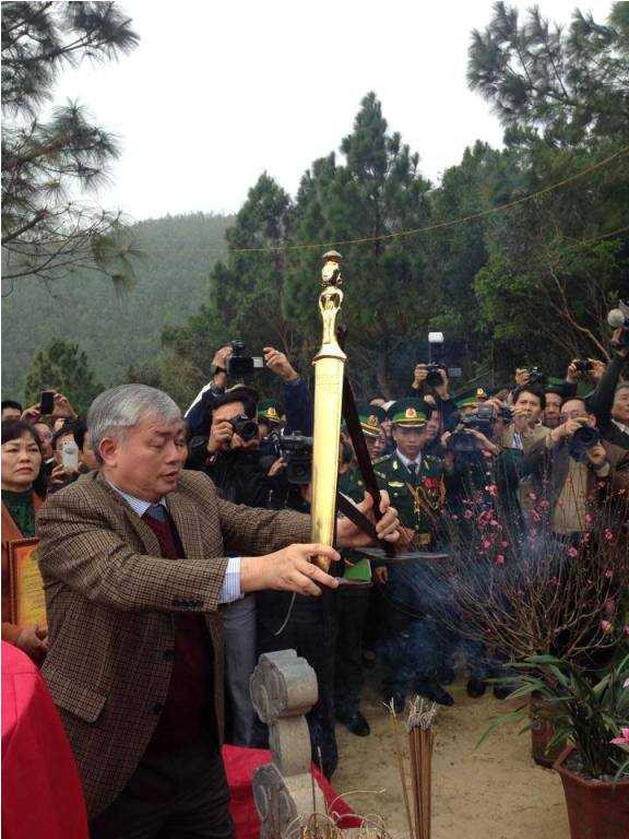 | Tỉnh Thanh Hoá kính dâng trống, pháo và kiếm lệnh lên Đại tướng. Ảnh: Facebook Đại tướng Võ Nguyên Giáp |
