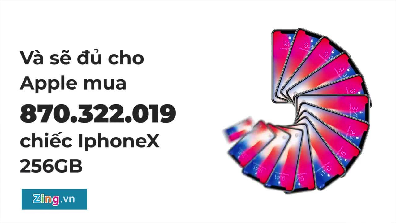 Apple đang là công ty duy nhất trên thế giới sở hữu vốn hóa thị trường trên 1.000 tỷ USD, một con số đủ giúp hãng mua tặng mỗi người Việt Nam 9 chiếc iPhoneX 256GB.