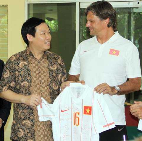 Hôm qua, Bộ trưởng Bộ tài chính Vương Đình Huệ có chuyến công cán ở Indonesia đã tới thăm đội U 23. Đó cũng là chuyện mừng. Bộ trưởng bộ “Tiền” đến và cho tiền. Coi như lấy may, nhìn khoản 1000 USD để hướng về món 1 triệu USD.