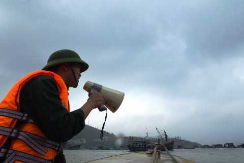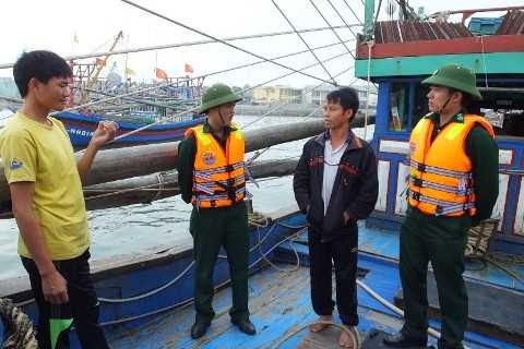 Bộ đội Biên phòng Thanh Hóa kêu gọi bà con ngư dân huyện Tĩnh Gia rời tàu cá vào nơi an toàn. |