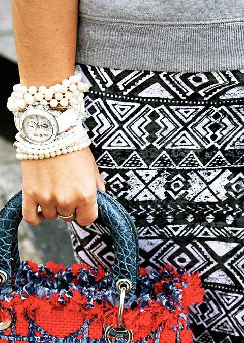 Với sự kết hợp ngẫu hứng đầy cá tính giữa đồng hồ với vòng tay kim loại, ngọc trai hay thay hẳn dây đồng hồ bằng lụa, dây vải sẽ cho bạn một cái nhìn khác về món phụ kiện quen thuộc này.