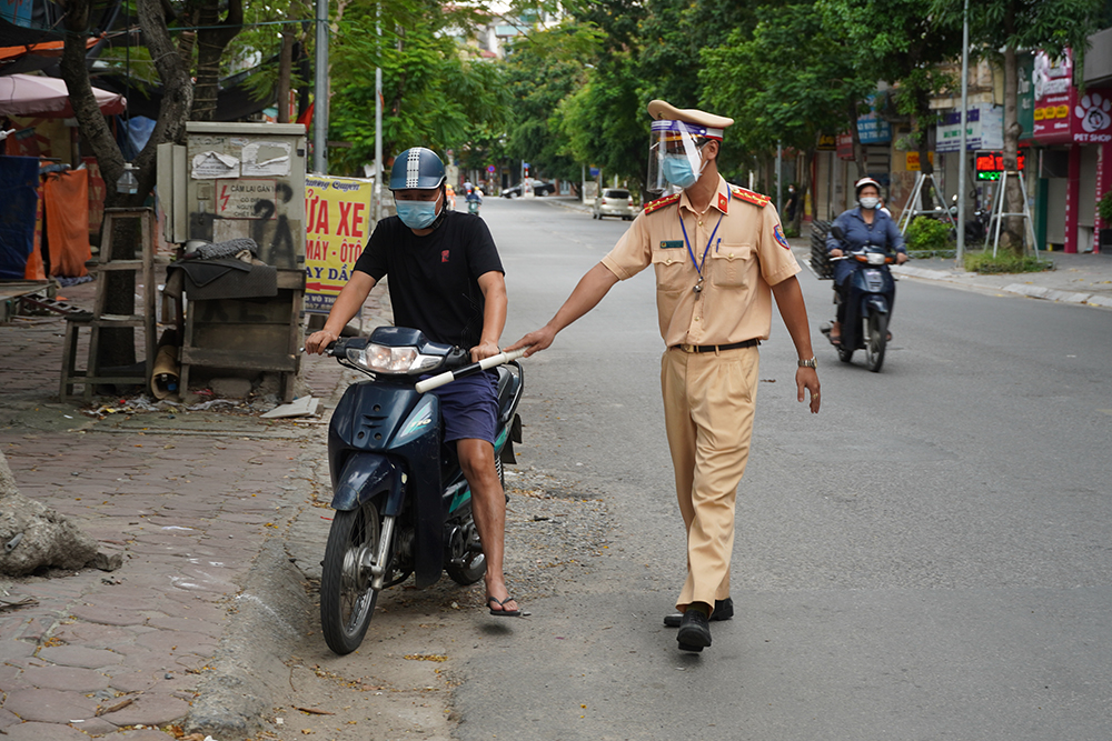 Tại thị trấn Trạm Trôi (huyện Hoài Đức), một người dân giải thích đến công ty làm việc theo yêu cầu, tuy nhiên công ty nơi anh làm việc không phải là đơn vị phục vụ nhu cầu thiết yêu hoặc trong danh mục được cấp phép của UBND TP Hà Nội. Lực lượng đưa cả người và phương tiện về Công an thị trấn Trạm Trôi để xử phạt, mức phạt dành cho lỗi này từ 1 đến 3 triệu đồng.