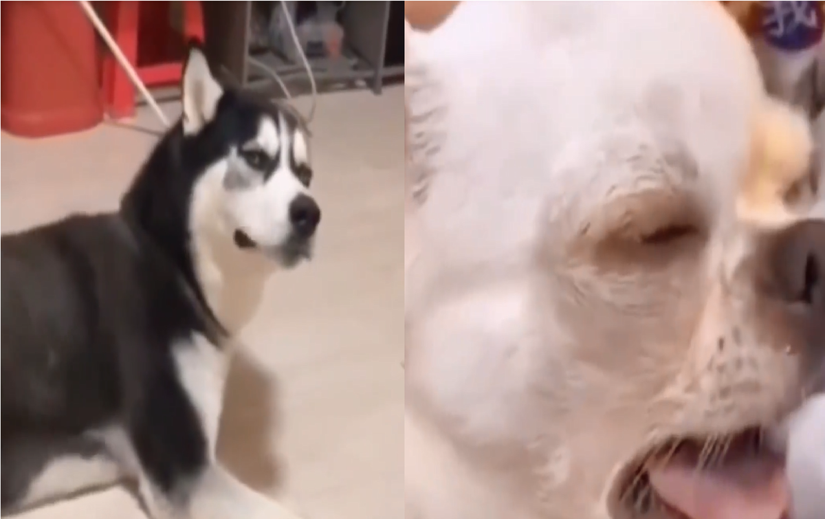 Không chỉ bày ra khuôn mặt tức giận, có chú cún còn nấc lên từng tiếng và khóc lớn để được dỗ dành.