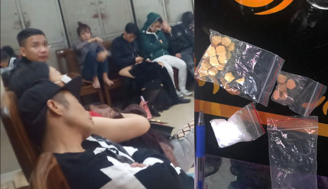 Bên cạnh đó, lực lượng công an phát hiện nhiều người đang sử dụng trái phép chất ma túy. Tang vật thu giữ là 10,378 gram MDMA, 12,264 gram Ketamine cùng nhiều công cụ sử dụng trái phép chất ma tuý. Qua test nhanh, cơ quan công an xác định có 102 người dương tính với ma túy.