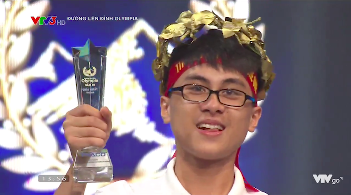 Xuân Huy giành vòng nguyệt quế lần 2 trong chương trình đường lên đỉnh Olympia năm 20. (Ảnh chụp màn hình)