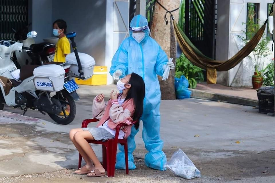 Lực lượng y tế Quảng Ngãi lấy mẫu xét nghiệm cho người dân.