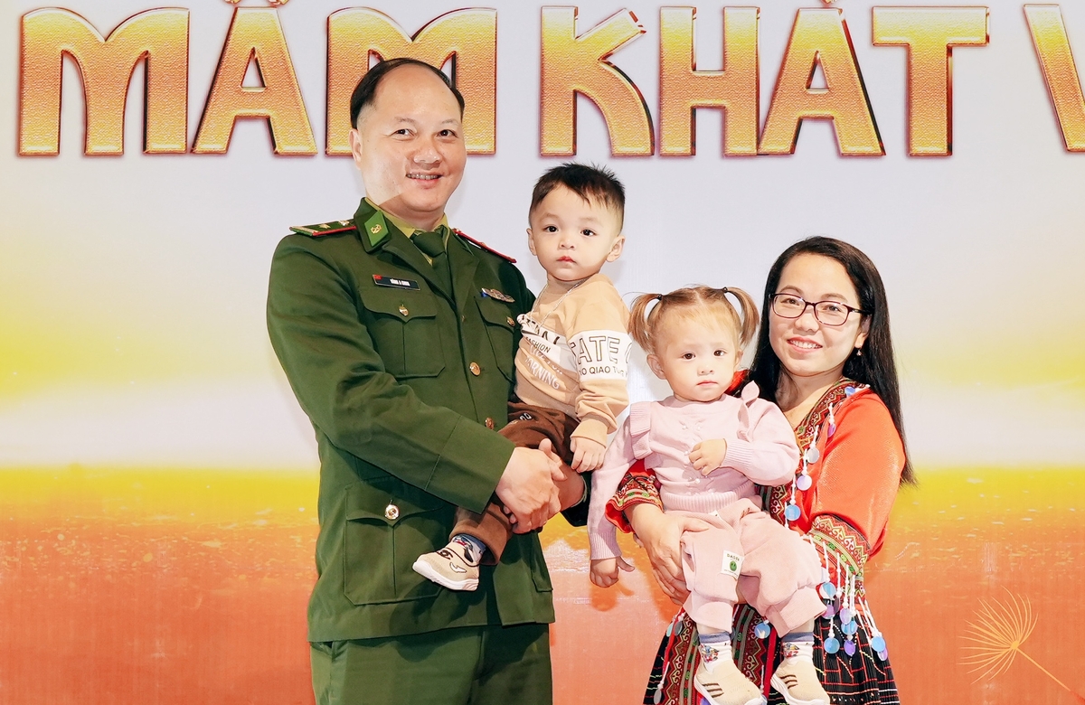 Đây là cái Tết thứ hai Thiếu tá Vàng A Chua, công tác tại Đồn biên phòng Mường Mươn, tỉnh Điện Biên và chị Lý Thị Xía cảm nhận không khí ấm cúng bên các con yêu - niềm hạnh phúc giản dị nhưng phải hơn một thập kỷ vất vả mới có được.
