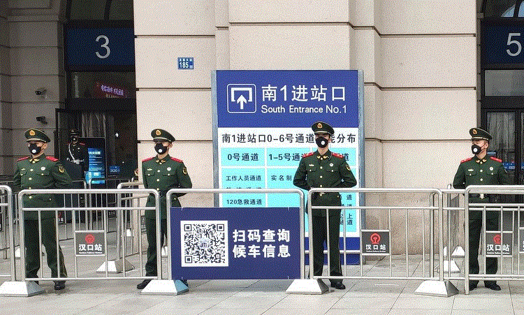 Cảnh sát phong tỏa ga tàu tại thành phố Vũ Hán hôm 23/1. (Ảnh: AP)