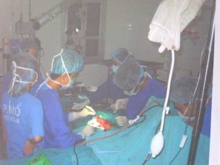 | Các Bác sỹ tiến hành nối ghép, mổ cho cháu Bích (Ảnh: MP) |