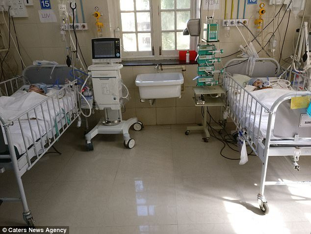 Hai bé nằm trong phòng chăm sóc đặc biệt
