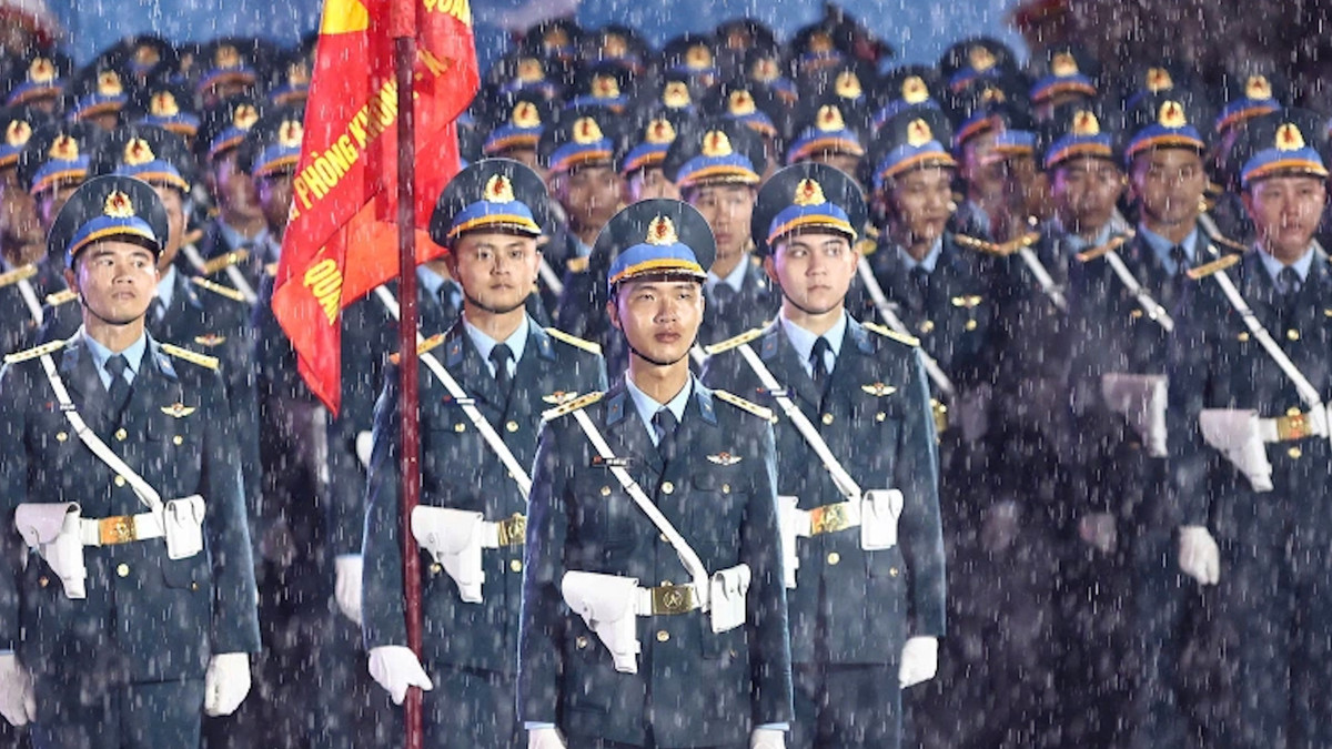 Tối 25/4, hơn 13.000 chiến sỹ đội mưa hát trong buổi sơ duyệt cấp Nhà nước lễ diễu binh, diễu hành kỷ niệm 50 năm Ngày Giải phóng miền Nam, thống nhất đất nước.