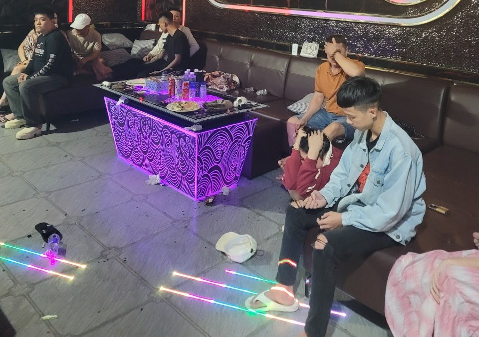 Tại đây, lực lượng chức năng phát hiện 13 thanh niên gồm 8 nam, 5 nữ đang mở nhạc với âm thanh lớn, trên bàn có một đĩa sứ, trên đĩa sứ có tờ tiền polyme cuộn tròn dạng ống hút và 1 thẻ nhựa ATM. Tổ kiểm tra tiến hành test nhanh và kết quả cho thấy 11 người dương tính với chất ma túy.
