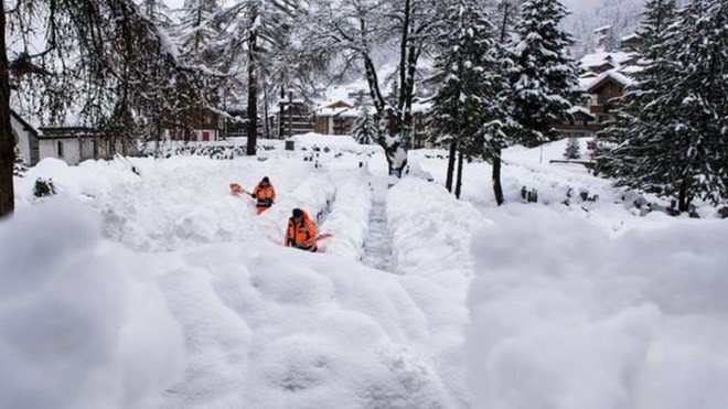 Tuyết ngập ngang người ở khu nghỉ dưỡng Zermatt. (Nguồn: EPA)