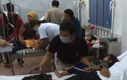 "136 bệnh nhân, trong đó có nhiều trẻ em. Qua kiểm tra ban đầu, vụ ngộ độc nhiều khả năng do ăn đùi gà chiên xôi ngọt trong cỗ cưới. Do lượng bệnh nhân nhập viện quá đông nên Trung tâm đã điều động toàn bộ y, bác sĩ và tăng cường thêm giường bệnh ở các khoa Nội, khoa Ngoại", bác sĩ Quang nói.