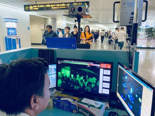 Những người đến sân bay Tân Sơn Nhất đều được kiểm tra thân nhiệt.