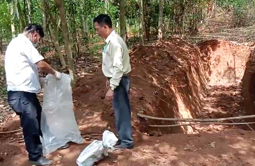Bước đầu công an và cơ quan thú y xác định có gần 140 con lợn bị chôn trái phép dưới hố. Số lợn này do một chủ trại lợn tại xã Lộ 25, huyện Thống Nhất thuê người đào hố, chôn lấp trái phép trong rẫy cao su của gia đình.