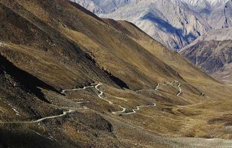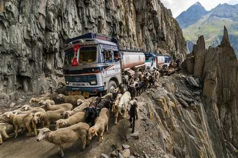 Con đường đá dài 9km nối liền Ladakh và Kashmir chỉ có đá sỏi trên những vách đá cheo leo. Sự nguy hiểm của con đường còn gia tăng vì nó rất hẹp và các phương tiện phải di chuyển cùng với gia súc chăn nuôi ở đây.
