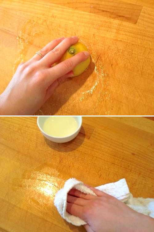 Hãy chuẩn bị: 2 thìa giấm ăn, 1 chén nước sạch, 1/2 quả chanh tươi, một ít muối biển và một chiếc khăn sạch. Đầu tiên, lau thớt bằng dung dịch giấm ăn pha với nước. Tiếp theo, nhúng nửa quả chanh vào muối biển và chà xát khắp bề mặt thớt. Cuối cùng, rửa sạch lại với nước.