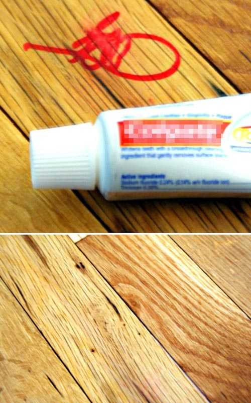 Các mẹ chỉ cần bôi một ít kem đánh răng vào vết bút lông dầu rồi dùng vải ẩm để lau sạch. Là xong.