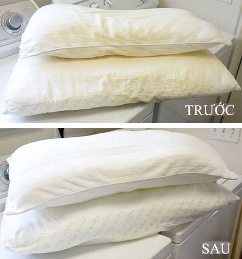 Ruột gối nhà em hay bị ố vàng lắm. Không biết làm sao để hết thì lại tìm được bí kíp này, hi. Các mẹ thử áp dụng luôn nha. Chỉ cần giặt gối với các thành phần theo công thức này: 1 cốc bột giặt, 1 cốc nước tẩy, ½ cốc bột hàn the và nước thật nóng, rồi xả sạch và phơi. Gối sẽ trắng sáng như mới.