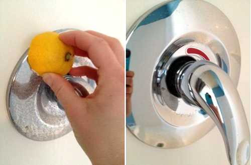 Các mẹ chỉ cần cắt đôi quả chanh tươi và chà xát trực tiếp lên vòi nước cho đến khi vết bẩn tan hết và đạt độ bóng mong muốn.